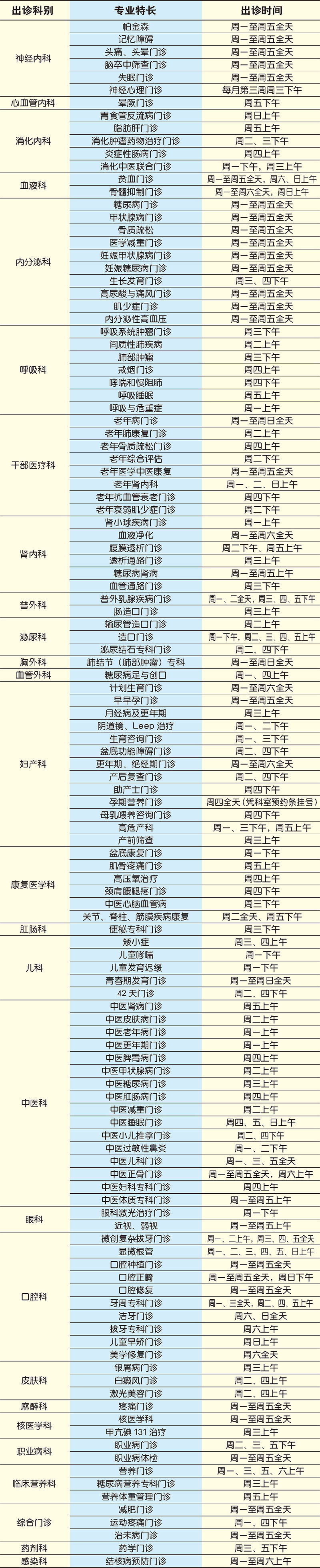• 注:出诊时间如有变化,以当日挂号为准