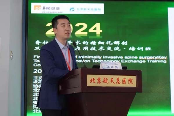 培训伊始,特邀北京航天总医院科教部陆春慧部长致辞,北京航天总医院骨科彭海洲主任致开幕词。同时,彭海洲主任就我院解剖实验室内的脊柱微创技术的操作,利用一张张鲜活的图片进行了介绍分享。