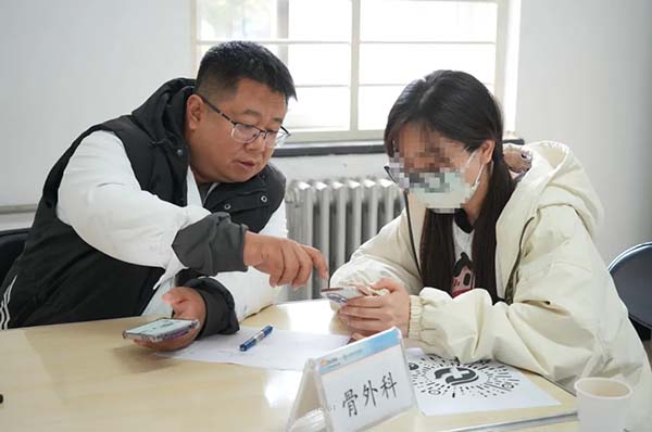 待十一院职工陆续到场,我院专家们立刻以精湛的医疗技术、严谨的诊疗态度与亲和的服务热情投入工作,对每一位咨询者都给予充分耐心,细致倾听健康诉求。诊疗过程中,专家团队针对职工群体常见的心脑血管问题、高血压、糖尿病等慢性病,深入讲解病因机制、用药规范与预防要点;面对胸外、普外科相关咨询,专家通过现场细致触诊、逐一研判既往检查报告,精准分析病情并给出科学诊疗建议,明确后续就医方向。中医科专家依托“望、闻、问、切”传统医术,为职工辨证体质差异,提供穴位按摩技巧、节气养生食谱、压力调节方法等实用指导。口腔科通过口腔科普暨系统化治疗方案定制等服务关爱职工们的口腔健康。
