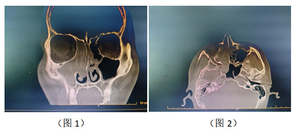 近日,我院耳鼻咽喉头颈外科为一名复发全组真菌性鼻窦炎患者实施鼻内镜下右侧全组鼻窦开放+窦内病变清除术,患者5年前因鼻塞症状于河北医科大学附属医院行"鼻内镜下右侧鼻窦开放术+鼻息肉切除术",术后症状缓解。3年前再次出现右侧鼻塞,就诊于当地医院,给予鼻喷药物,症状无缓解。1周前就诊于我院,行鼻实CT检查示:右侧全组鼻窦及鼻腔内软组织密度影。(图1、2)
