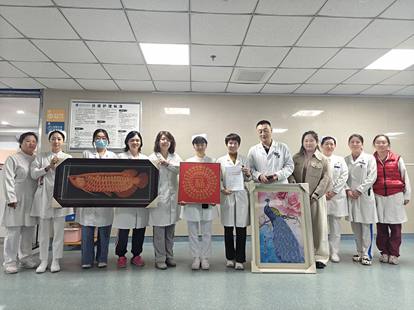众多老年患者在我院老年医学科医护团队的悉心治疗与照料下,身体逐渐康复。他们将我院老年医学科视为自己的第二个家,亲手制作刺绣,将饱含深情祝福的绣品送到科室,以此感谢医护人员的精心付出。