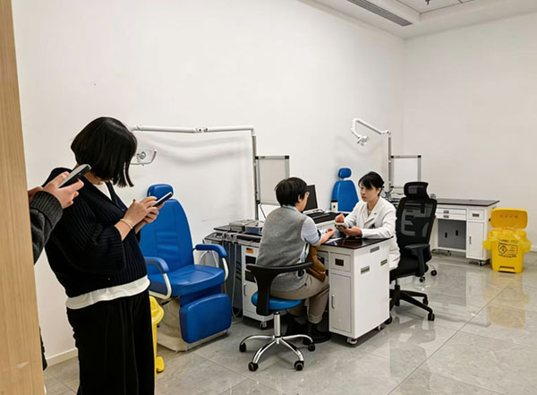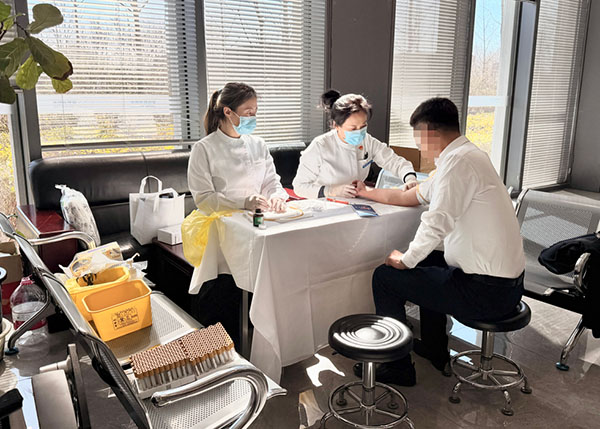 在航天一院服务现场,我们增设眼部按摩、中医咨询服务,紧扣“肝开窍于目”的中医理念,为长期用眼过度的职工送上专属关怀;采血区、检查区、解读区各环节高效衔接,医护人员以娴熟的技术、耐心的引导、专业的解答,让每一位职工都能享受到精准、暖心的服务,将“治未病”理念传递给每一个人。