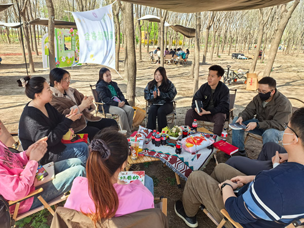 活动现场,“草坪读书会”的主题横幅在春风中轻扬,趣味十足的阅读打卡装置成为青年们的打卡热点。大家围坐成圈,在帐篷下分享阅读感悟,从经典名著的思想启迪,到青春成长的真挚体悟,每一段分享都饱含热忱与思考。青年们从医者仁心到航天匠心,从岗位坚守到家国使命,畅所欲言、各抒己见,在交流中相互启发、在倾听中彼此滋养,既感受到医学事业守护生命的厚重,也体会到航天事业逐梦苍穹的伟大,进一步坚定了立足本职、担当作为的青春信念。互动交流环节中,青年们还围绕工作困惑、生活理想、青年成长等话题,开展轻松愉悦的联谊交流,现场笑声不断、暖意融融,充分彰显了新时代青年朝气蓬勃、积极向上的精神面貌。