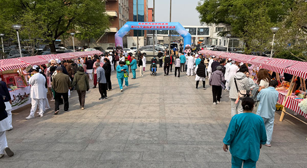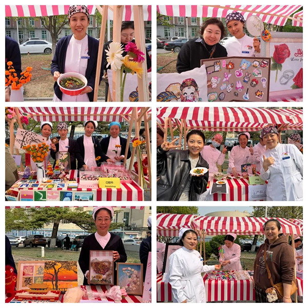 4月15日,春风和煦,护理部组织全院科室在一号楼前举办护士才艺嘉年华。一座10米长的蓝色拱门伫立于广场前,在蓝天的映衬下,活泼且柔和;二十个红白相间的展架整齐排列,宛如一道灵动的风景线。各科室将护士们自制的书法、绘画、手工艺品、编织作品及美食一一陈列,吸引了众多患者、家属及医务人员驻足欣赏。